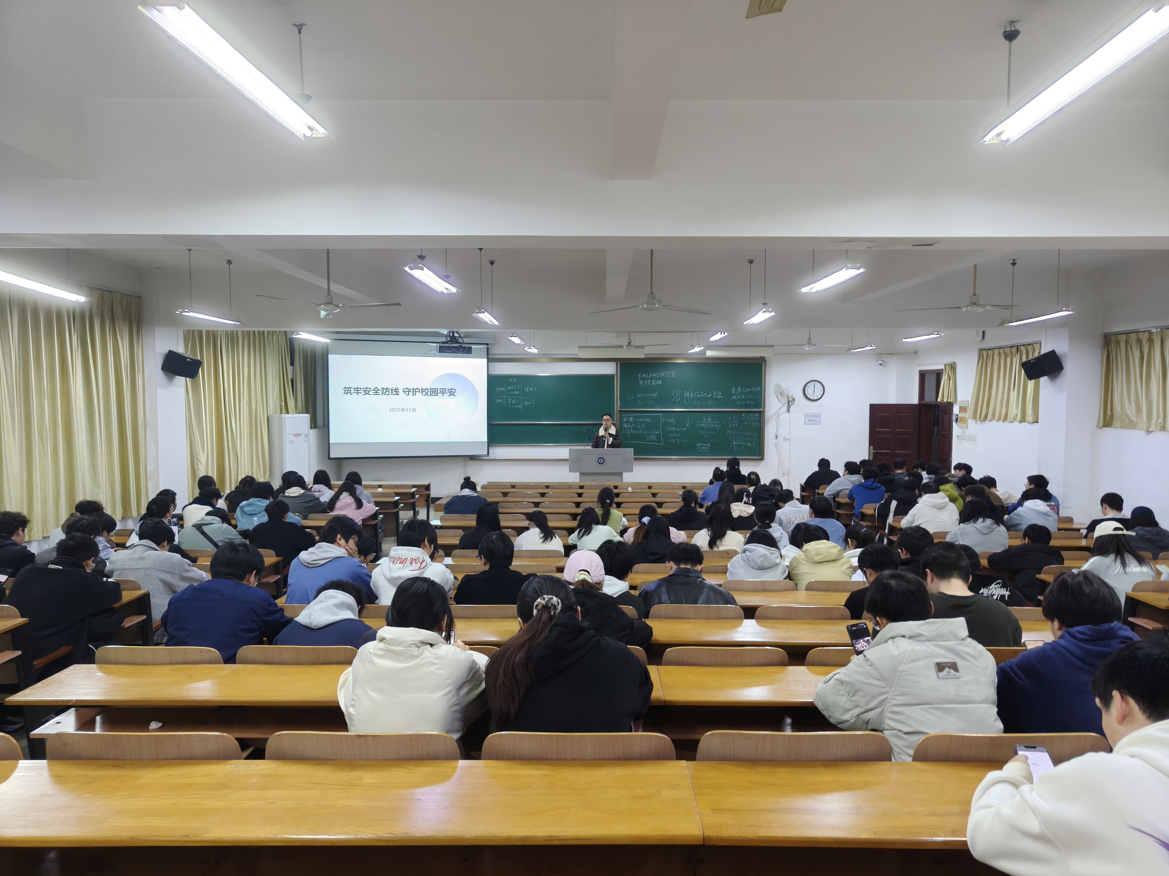组织研究生及本科生各年级于崇礼楼开展了以“筑牢安全防线 守护校园平安”为主题的消防安全教育班会,全面普及宿舍消防安全知识,营造安全、和谐、稳定的校园环境。