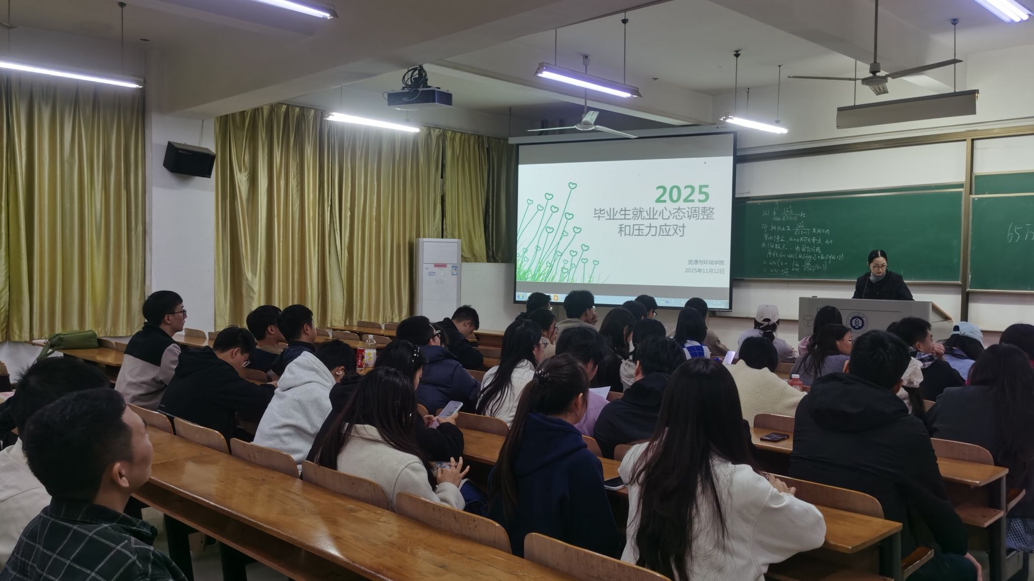 杨璐以“就业心态调整和压力应对”为主题开展讲座。她通过互动,了解在场同学在求职过程中普遍遇到的困惑与焦虑。她指出,面对激烈的市场竞争和未来的不确定性,产生压力是正常现象,关键在于如何科学应对。在策略层面,她建议大家拓宽信息渠道,精准定位,提升核心竞争力。在心理层面,她传授了多种情绪管理与压力疏导的方法,如积极自我暗示、寻求社会支持等,引导同学们建立积极乐观的心态,将压力转化为迎接挑战的勇气。