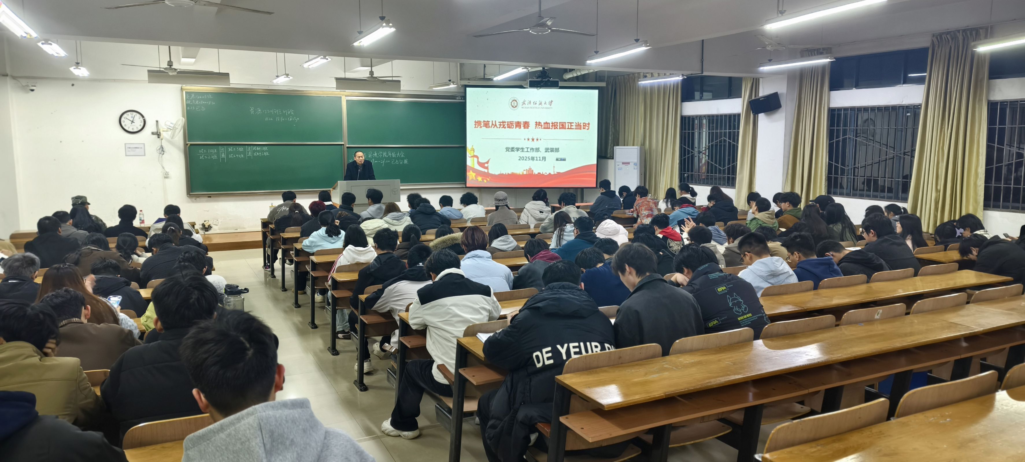 11月23日,副书记、各年级辅导员、班主任、退役士兵代表分年级、班级开展了“携笔从戎砺青春 热血报国正当时”主题班会暨征兵政策宣讲会。班会上,同学们集体观看了2026年征兵宣传片,老师们详细解读了入伍待遇、入伍条件、入伍流程环节,普及入伍常识,让同学们有了更为全面和深入的了解。