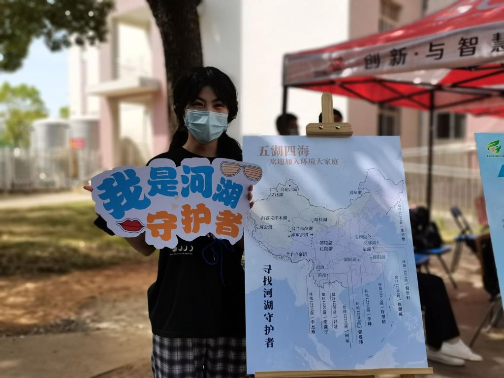 将同学们的名字与家乡的湖泊相连,同学们争相成为“河湖守护者”,举起“遇见WTU,问道环境”、“圆梦纺大”“我是河湖守护者”等手牌合影,留下初入校园的青涩、喜悦与憧憬,留下独特的“纺大环境”初印象。