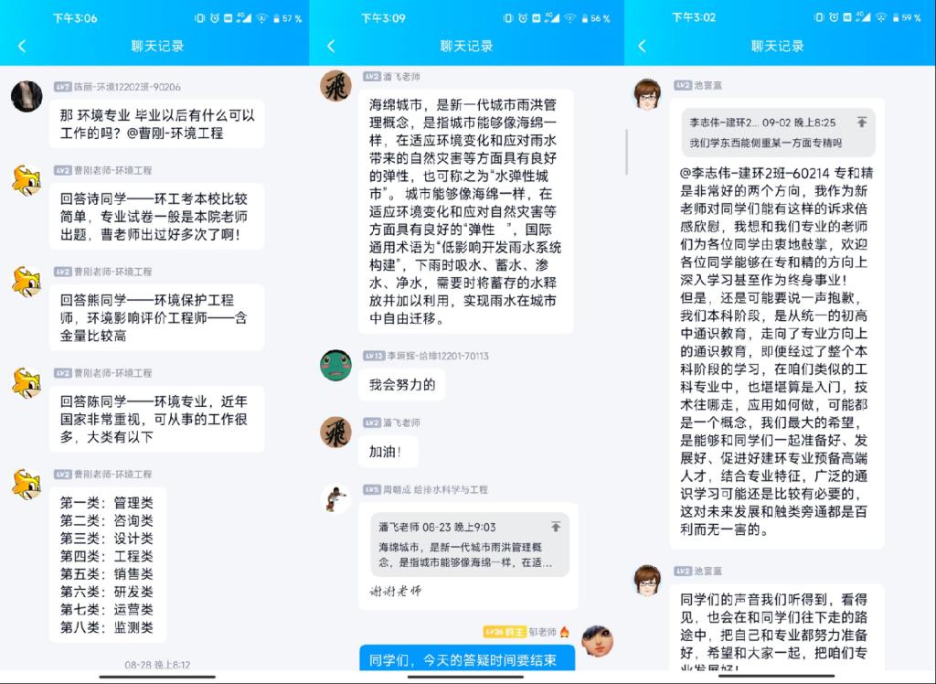 专业老师、班主任的积极回应,就新生关心的报到流程、专业知识学习、大学生涯规划等答疑解惑。