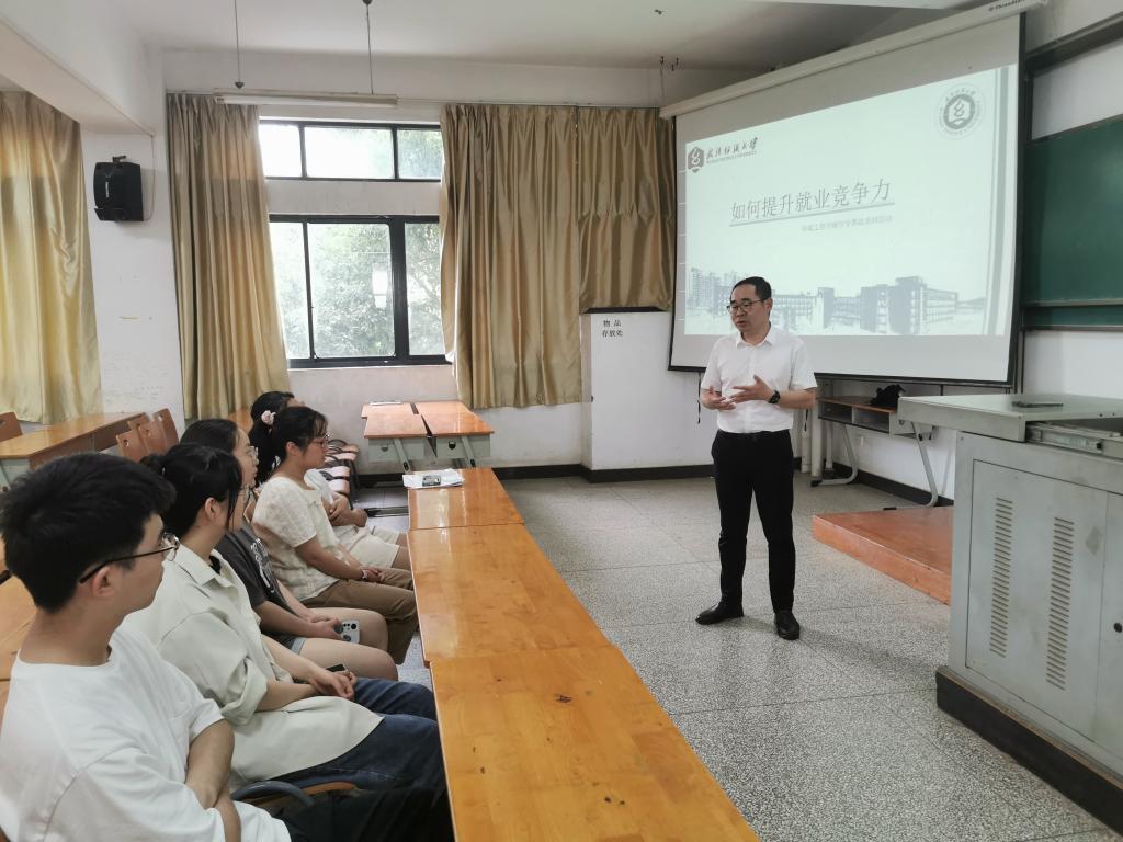 在崇礼楼210开展研究生“导学思政”系列活动之《如何提升就业竞争力》座谈会。院长潘飞、研究生辅导员、23届研究生参会。