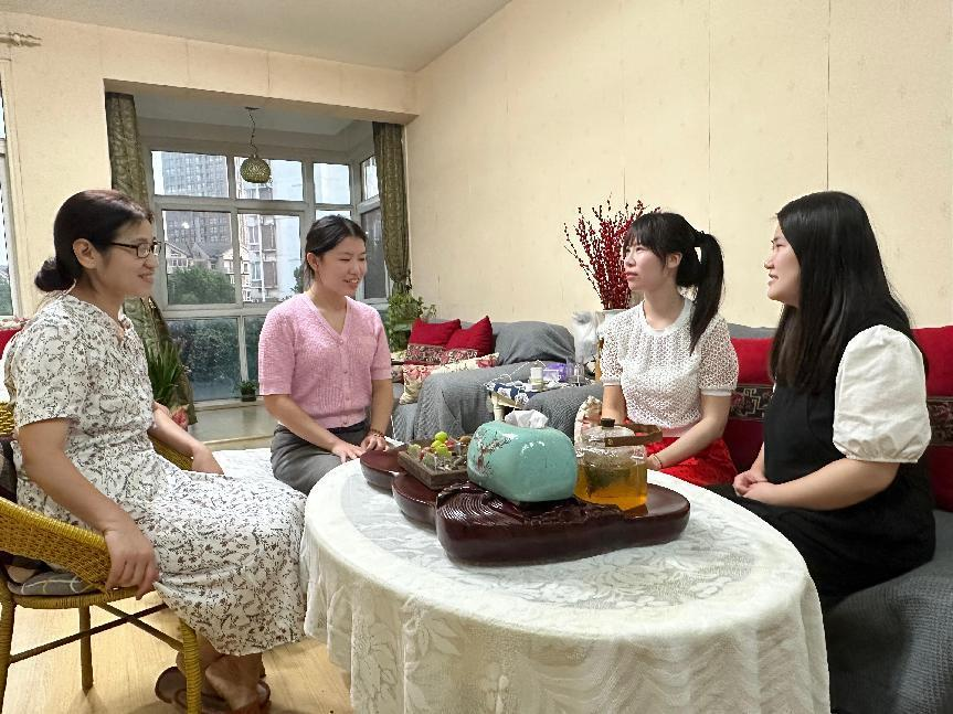 7月15日下午,我们开车来到雨薇家中,一进门就看到雨薇妈妈正在调整已经摆放非常整齐的果盘,对我们十分热情。雨薇说:“得知老师们要来,我妈妈既紧张又高兴,因为第一次有老师来家访。“