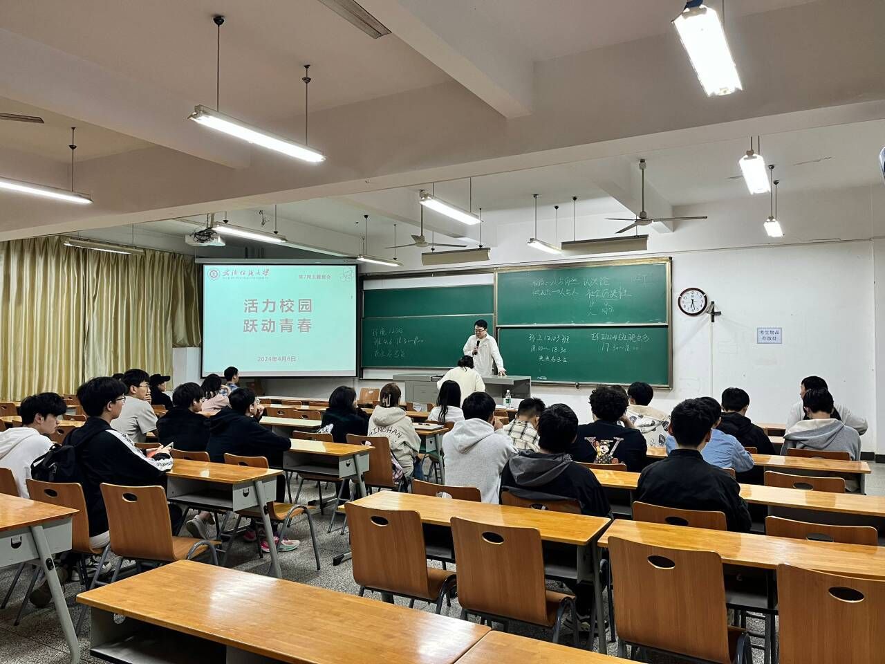 各年级及研究生分别在崇礼楼开展了以“活力校园,跃动青春”为主题的晚点名班会。
