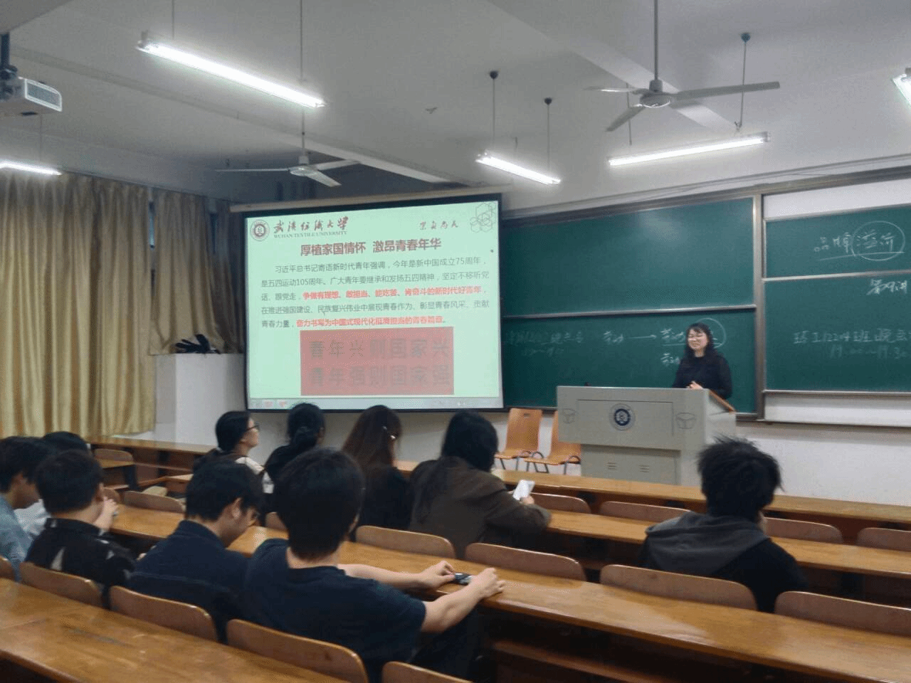 各年级及研究生于5月5日在崇礼楼分别召开了以“弘扬“五四”精神,奉献火热青春”的主题班会。