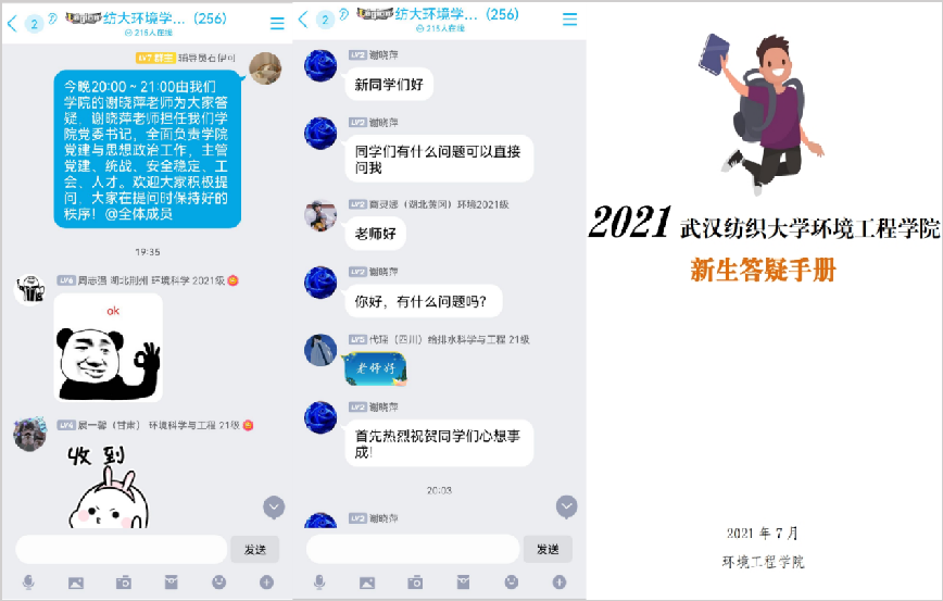 宿舍是什么样子的呀?”……新生们在群里积极提问,得到了答疑老师和学长的积极回应,就新生关心的报到流程、专业知识、大学生涯规划等答疑解惑。