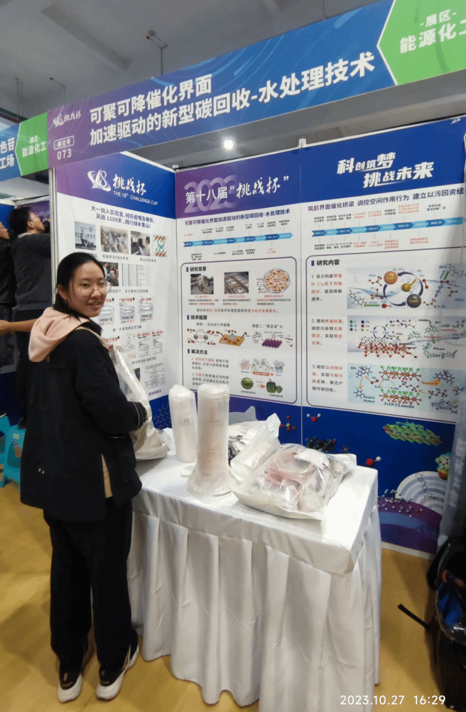 丁艺琛积极参与实际工业废水处理,与团队成员一起创新性地将课题组的环境功能材料及深度处理技术融入纺织印染行业、造纸行业等废水处理领域,助推研究成果在工业废水处理中的实际应用。看着浑浊黢黑的工业废水在团队技术处理下变得澄清,她倍感兴奋。团队相关技术在实际工程中得到了较好的应用,解决了一些企业的废水处理难题,总应用金额达424.52万元。相关研究为难降解印染废水的深度处理提供了技术支持,相关技术在生产一线产生了良好的经济效益和社会效益。