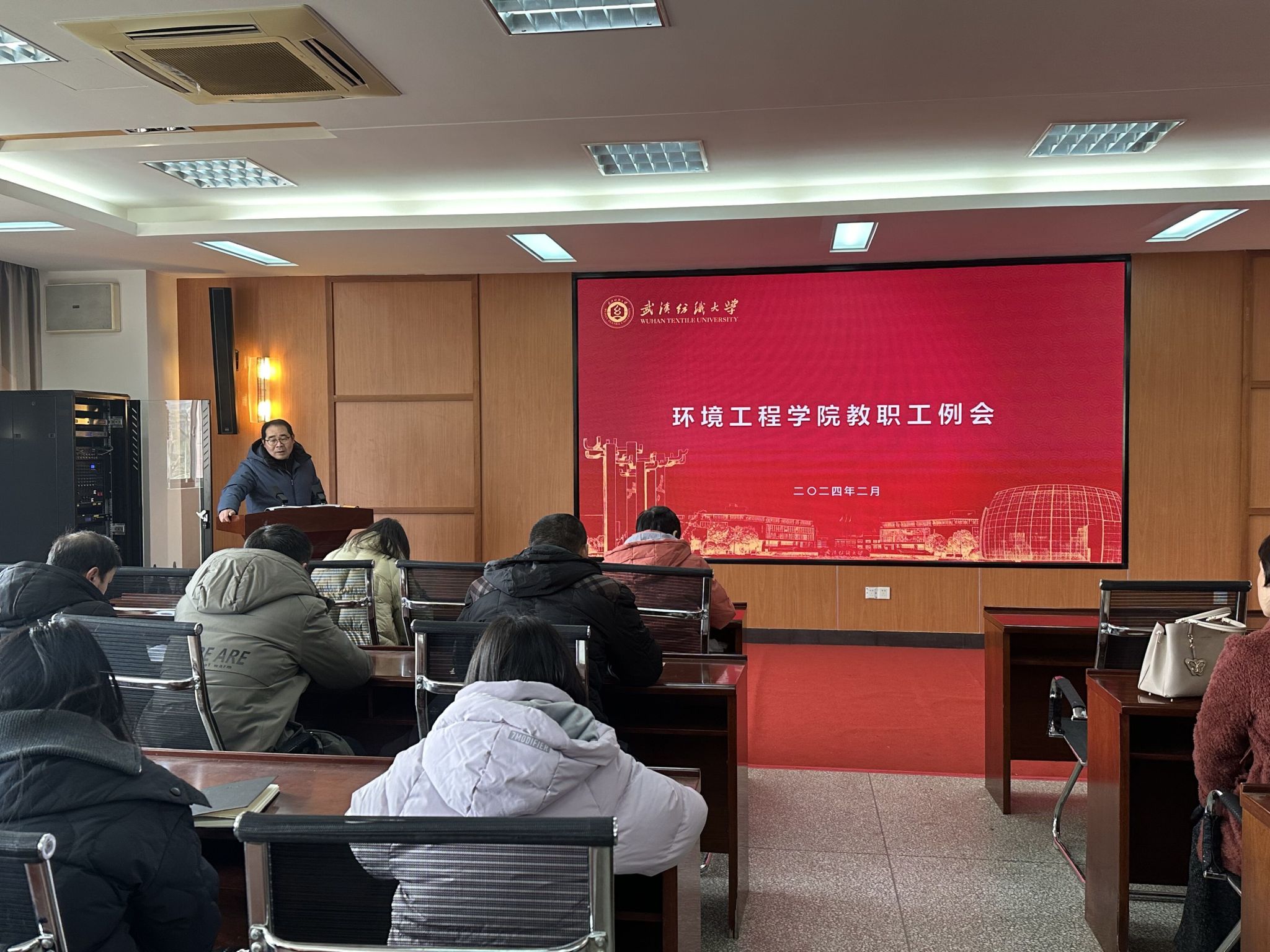 在崇礼楼310大会议室召开2024年春季学期工作会暨教职工师德师风工作会。会议由院长潘飞教授主持。