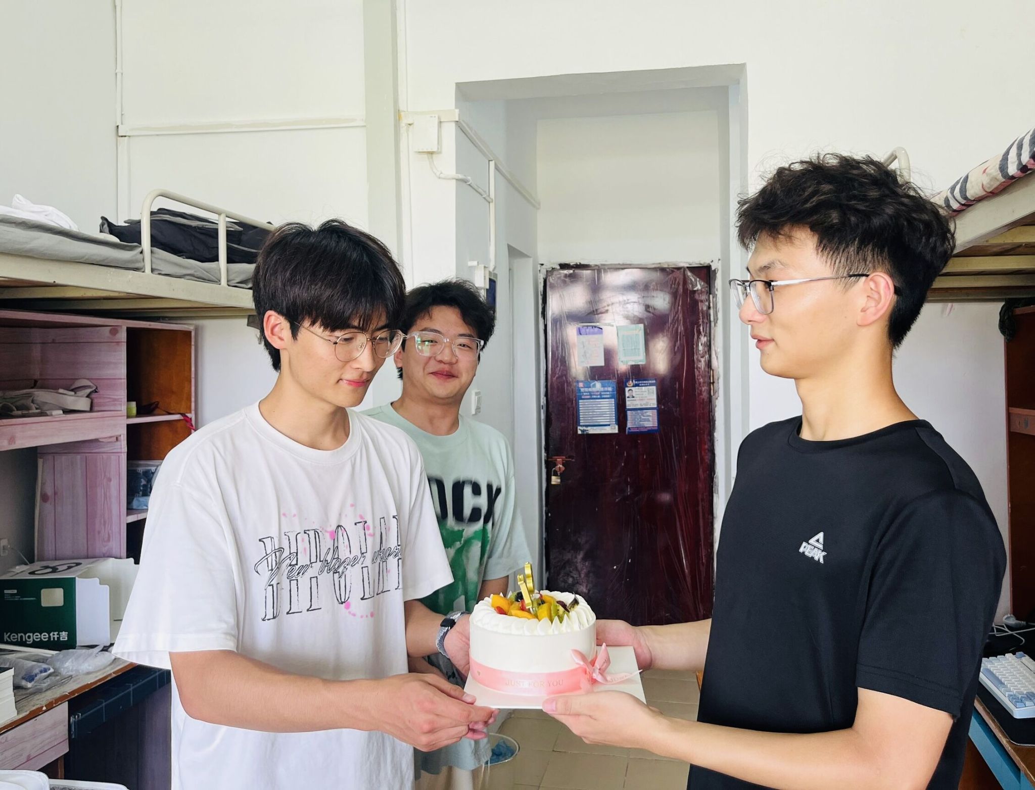 领导班子和同学们为建环12402班向承燃、资源12403班金华洋两位同学送上了最真挚的祝福。在欢乐的“生日快乐”歌声中,第一天大学生活的欣喜与生日祝福的惊喜让了两位同学忘却了长大后首次离家的伤感。